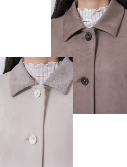 柔らかく優しいニュアンスのあるブラウンカラー。スエードの毛並みの陰影がはっきりと浮かび高級感を引き立てます。ベーシックで合わせやすく使い勝手の良いカラーです。
