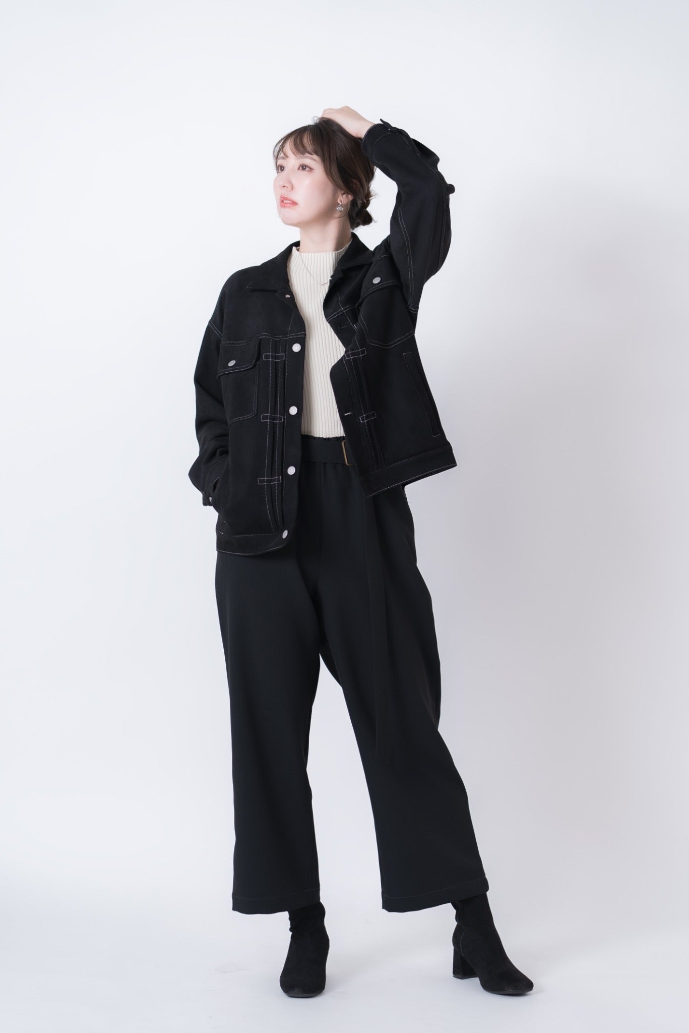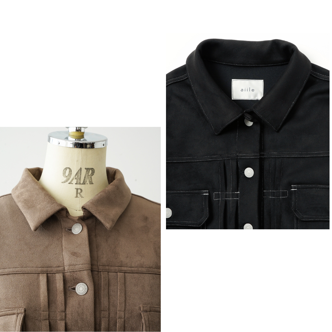 ジャケットは、【メンズライクな形】を【上質で滑らかな素材】で表現するaiileの新しいアプローチで1950代のリーバイスセカンドモデル「Lot.507XX」Gジャンを元に型紙を起こしました。前開き部分に入っている左右二本ずつのタックがポイントです。