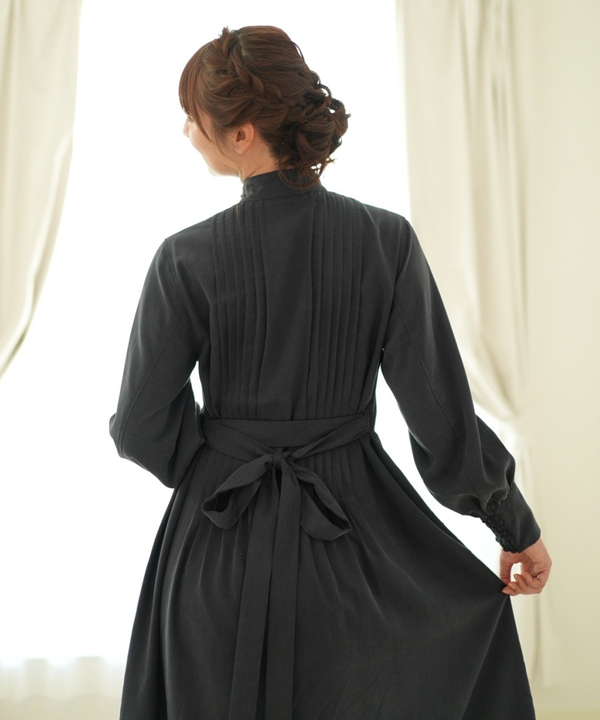 ピンタックやドレープ部分の陰影に、墨のような濃淡が現れる味わい深いネイビー。高級感を感じさせるシックな色味です。