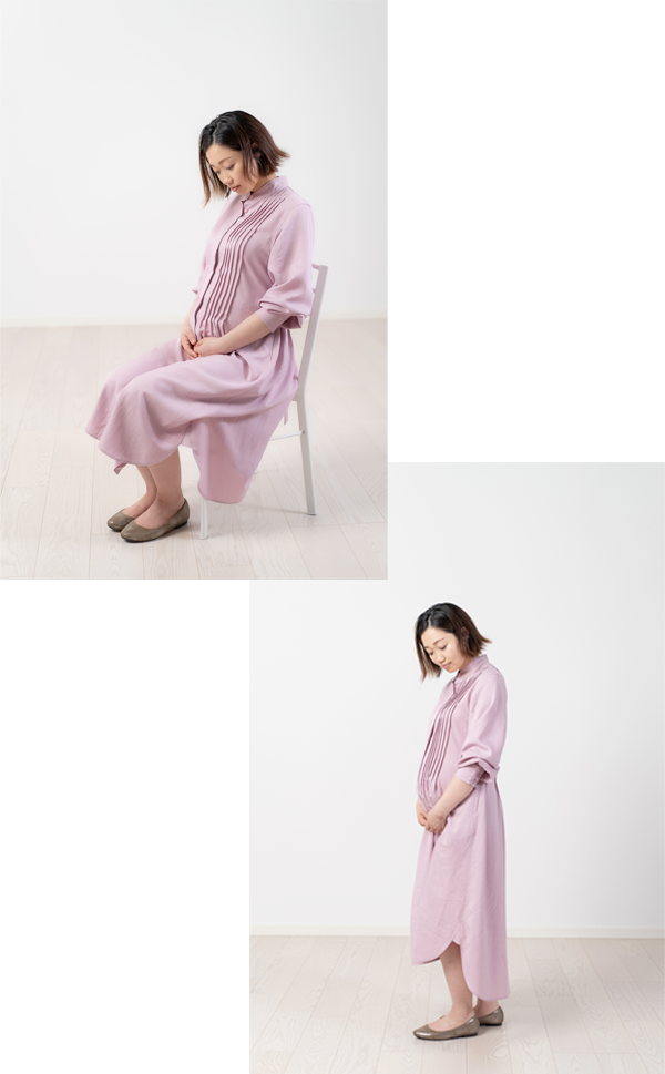 ウエストが102cmとたっぷり生地を使っているので、妊婦さんにも着ていただけます。