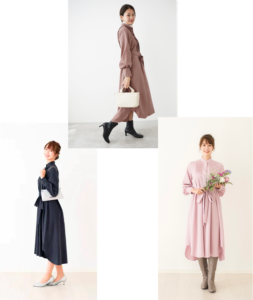旅行、ディナー、行事...カジュアルは勿論、お仕事にも、オケージョンシーンにも。着こなし次第で180°印象が変わる万能ワンピースです。
