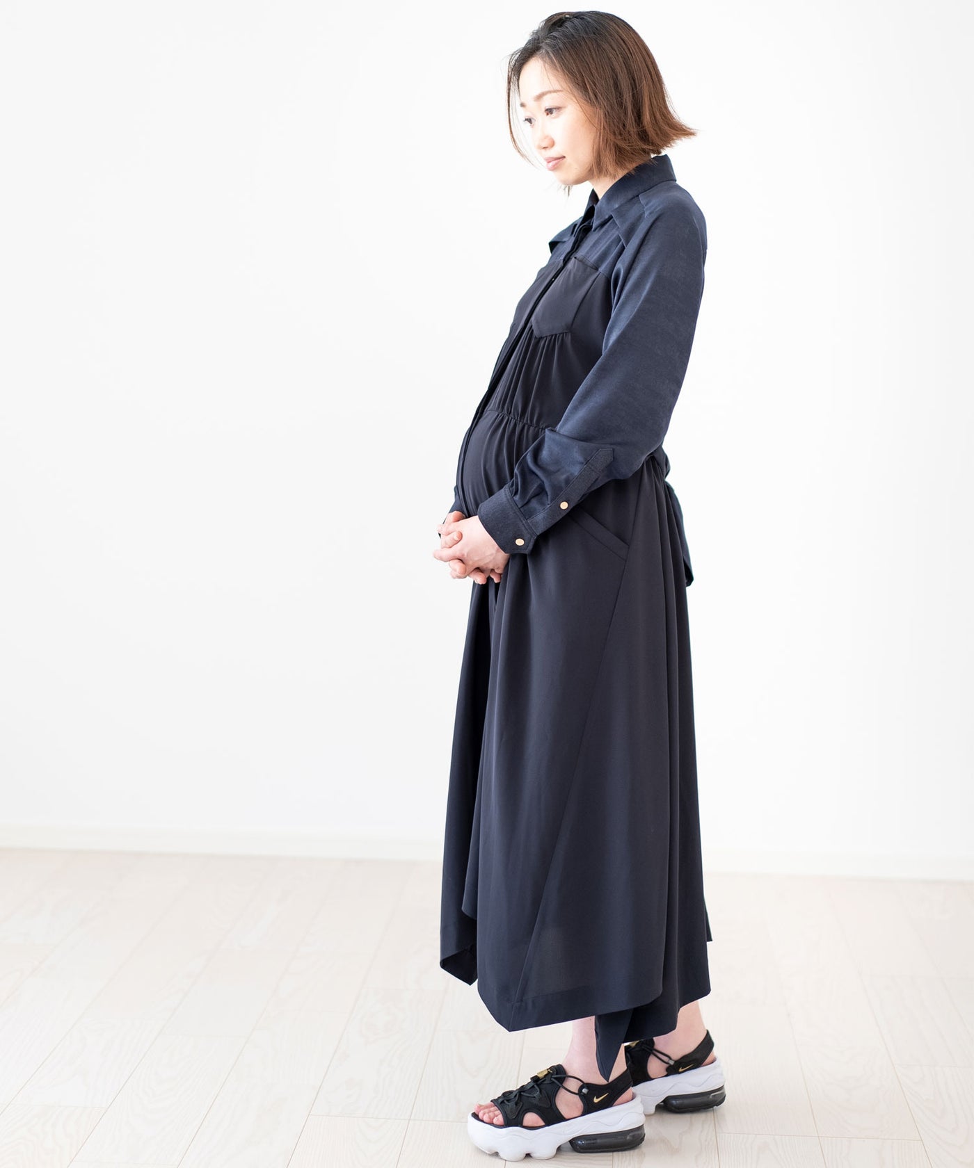 ウエストが104cmとたっぷり生地を使っているので、妊婦さんにも着ていただけます。