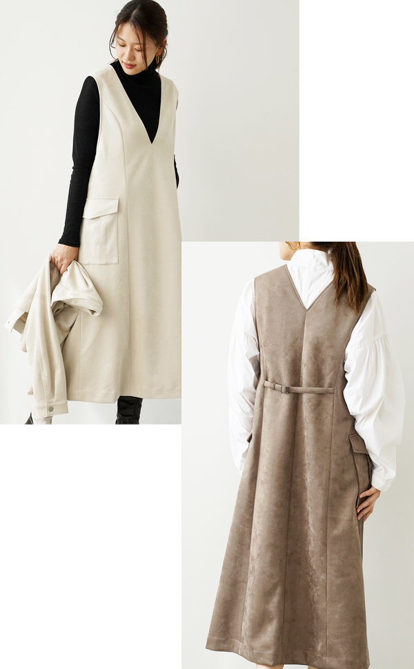 【洗える】エコスエードジャンパースカート