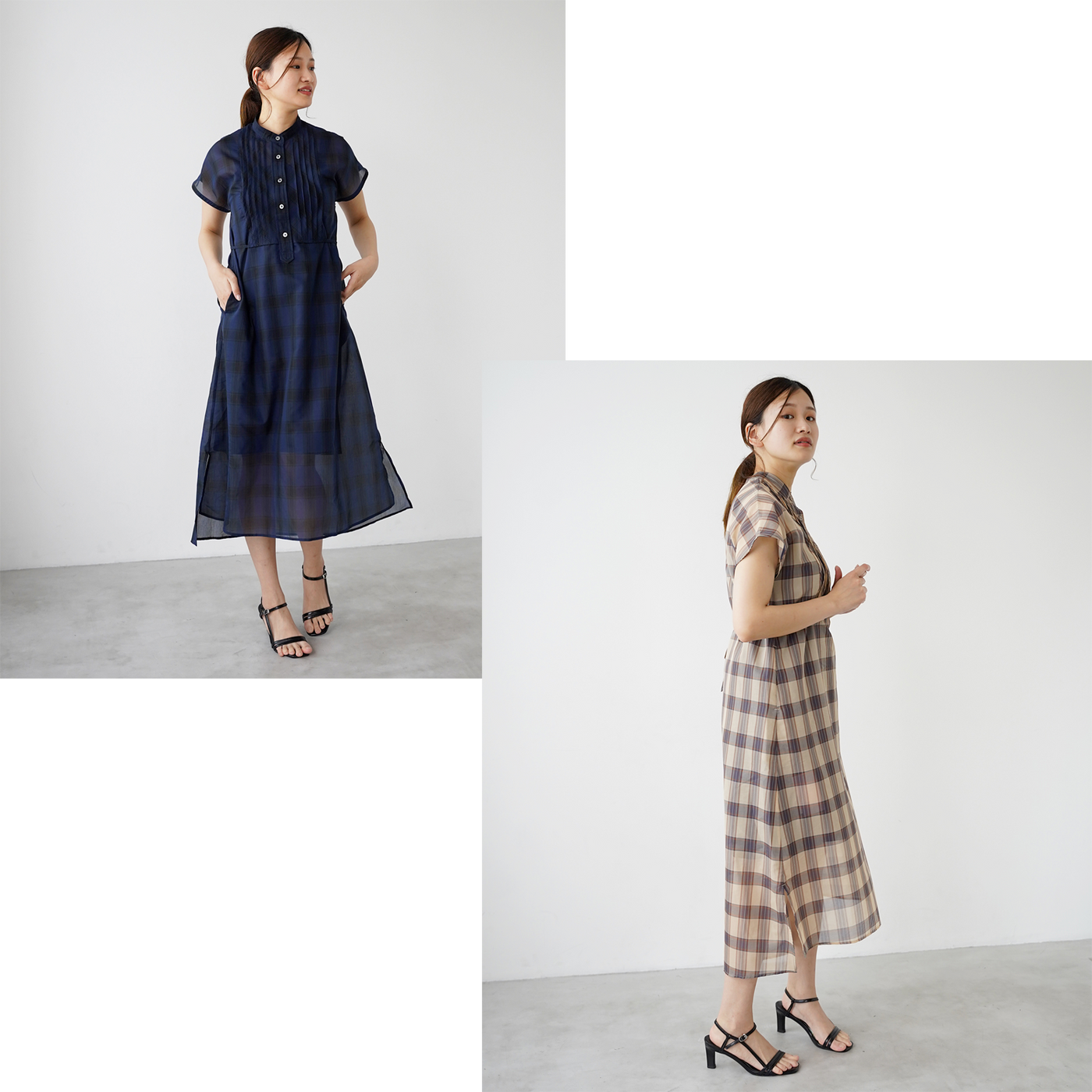 上品なチェック柄と落ち着いた色合いの他にはない“大人可愛い”ワンピースです。