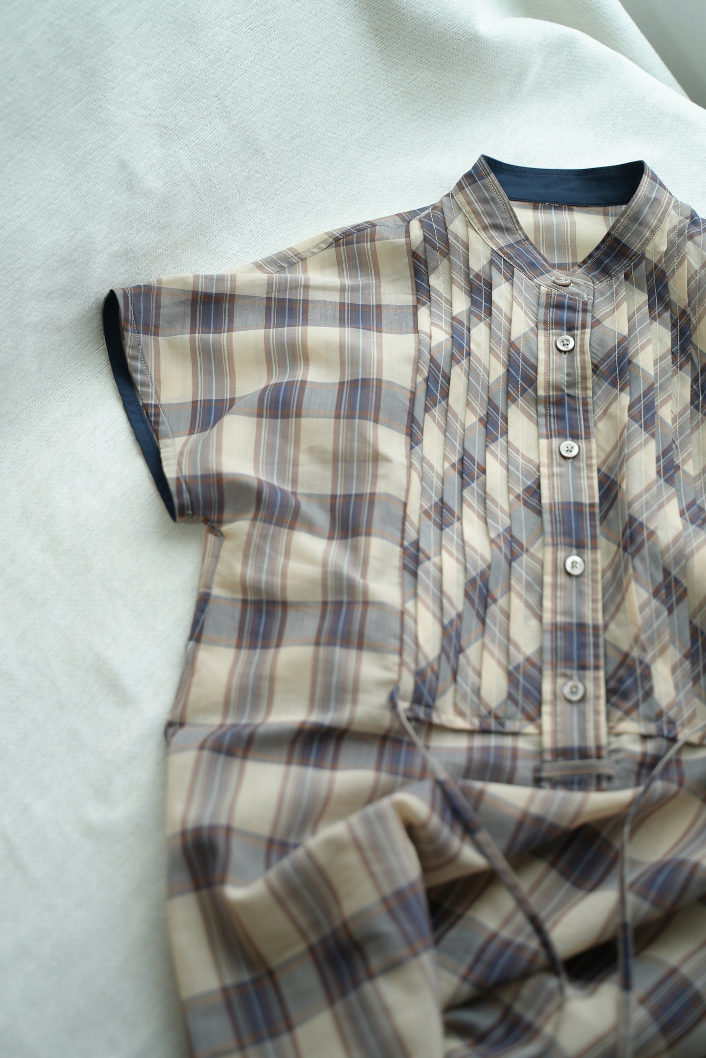 胸元の均一に揃ったピンタックとチェックの組み合わせがポイントのワンピース。